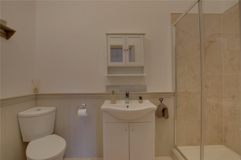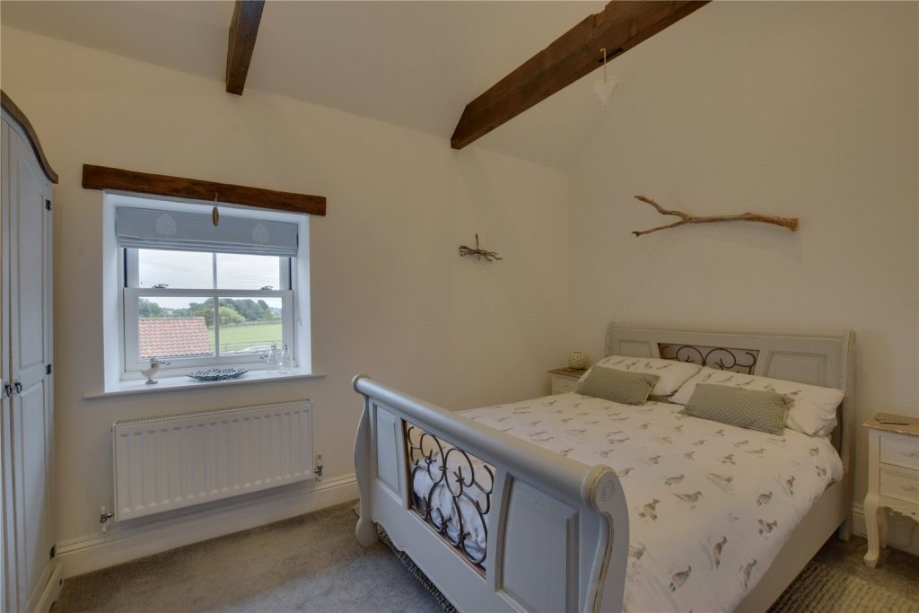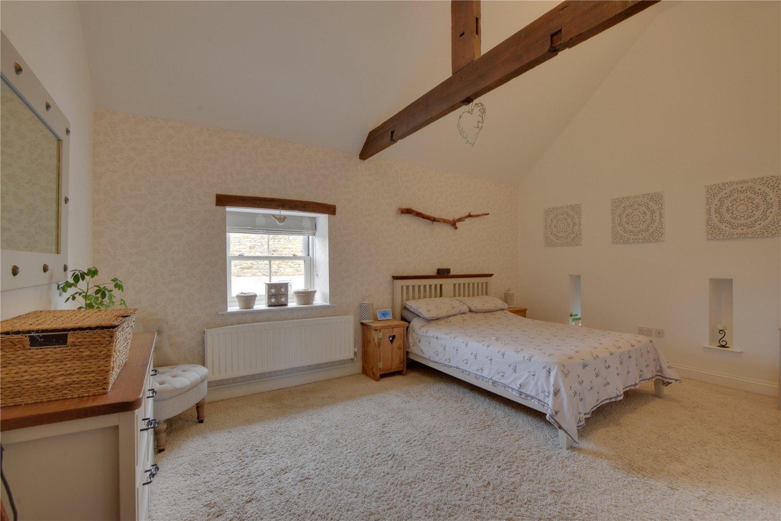 The master bedroom is generously proportioned double and lies to the front aspect of the property, benefitting from a window which overlooks the gardens, as well as original arrow slit windows to the side elevation and a high-vaulted, beamed ceiling. The master bedroom is serviced by en-suite facilities which a shower cubicle with a mains fed shower, a wash hand basin set within a vanity unit and a low level WC.