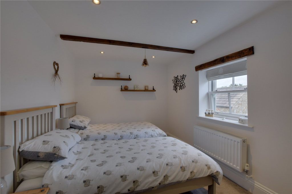 There are two further double bedrooms, both having the benefit of windows to the front aspect with views of the gardens and high-vaulted ceilings with beams.
