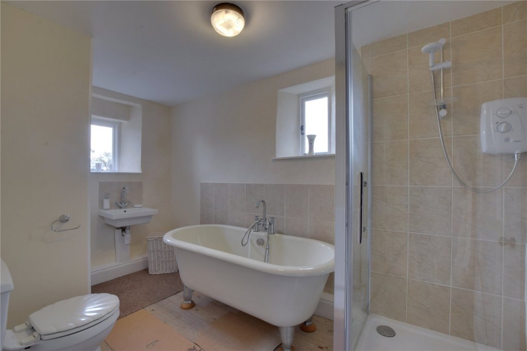 Returning to the reception hallway, stairs rise to the first floor landing. To this floor there are four well proportioned double bedrooms, as well as a good sized single. There are also two bathrooms, both fitted with white suites comprising a W/C, a wash hand basin and a bath. One of the bathrooms also features a shower cubicle with an electric shower.