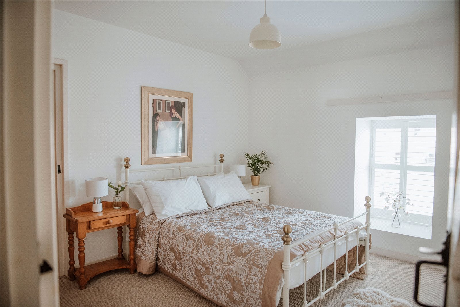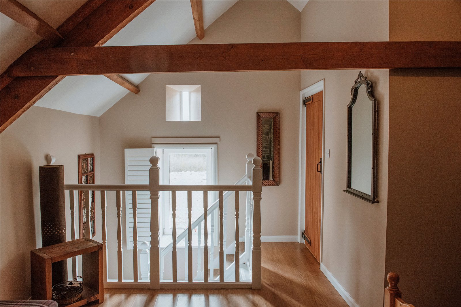 Stairs rise to the first floor and open into the bedroom, which is a well proportioned double with a full height ceiling with cathedral beams. There is a pleasant window to the side that floods the room with natural light. The accommodation is completed by the shower room, accessed via the bedroom, which is fitted with a suite comprising a WC, a wash hand basin, and a shower cubicle with an electric shower.