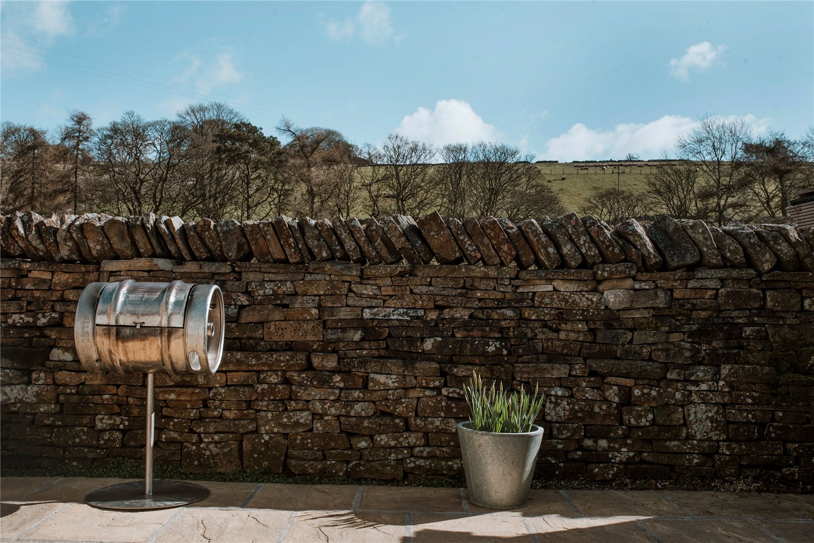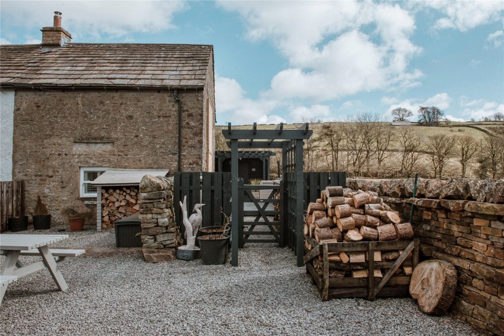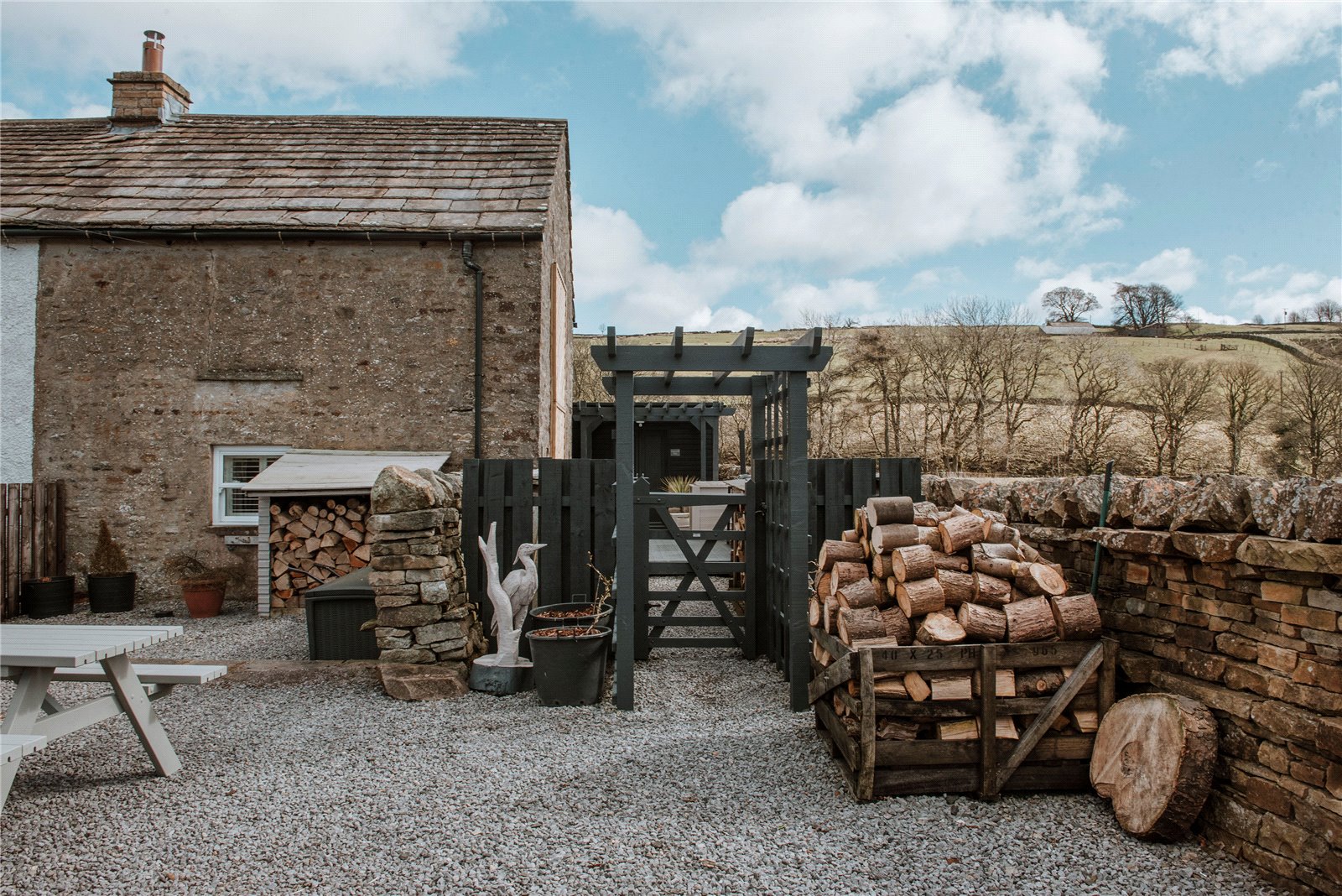 To the rear, there is a paved courtyard which is bounded by stone walls and offers space for a table and chairs, there is also a woodstore. The courtyard enjoys views over the countryside beyond.