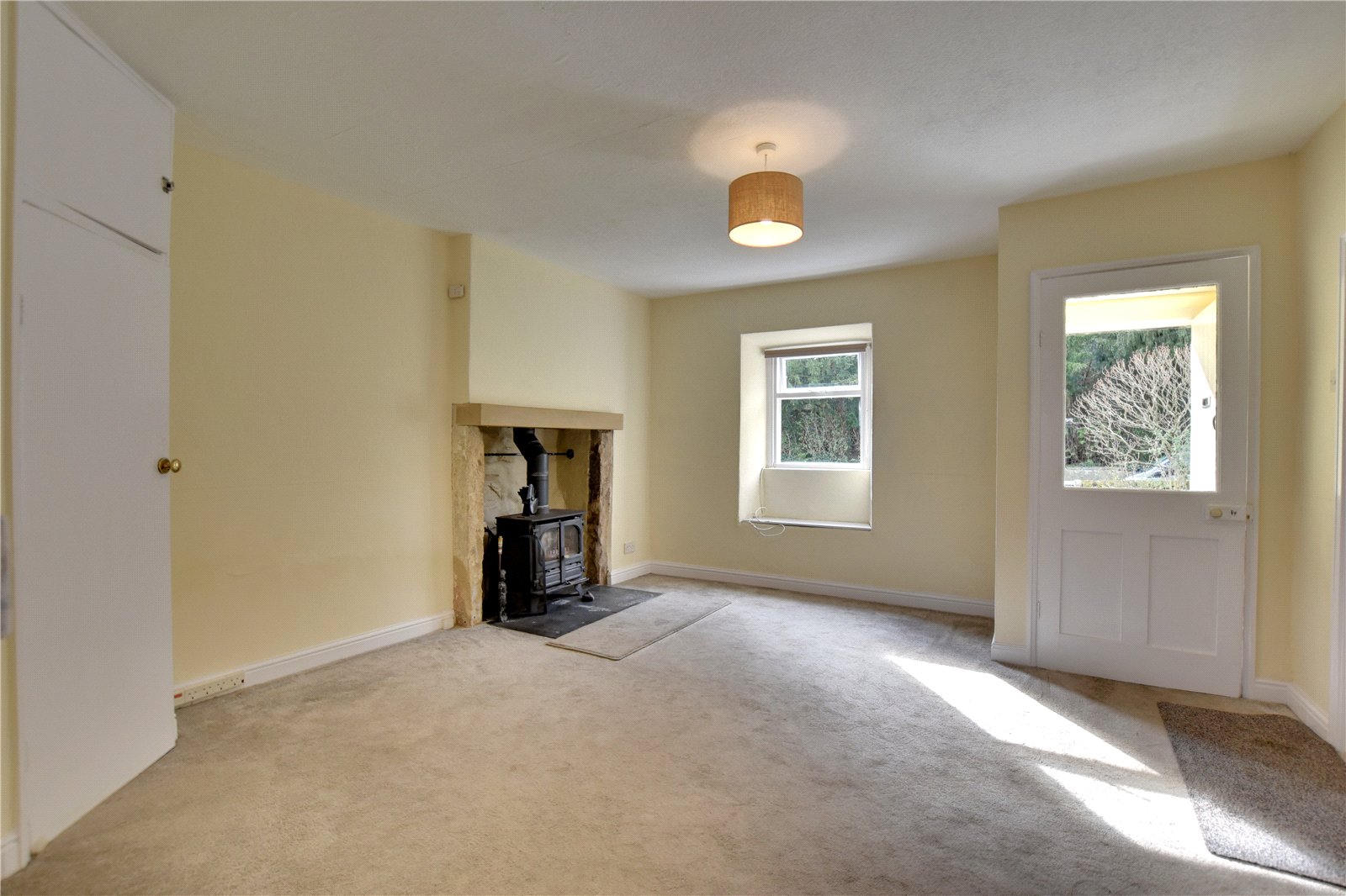 The main entrance leads into the reception vestibule which in turn leads into the living room, featuring a multi-fuel stove set within an inglenook as the focal point.