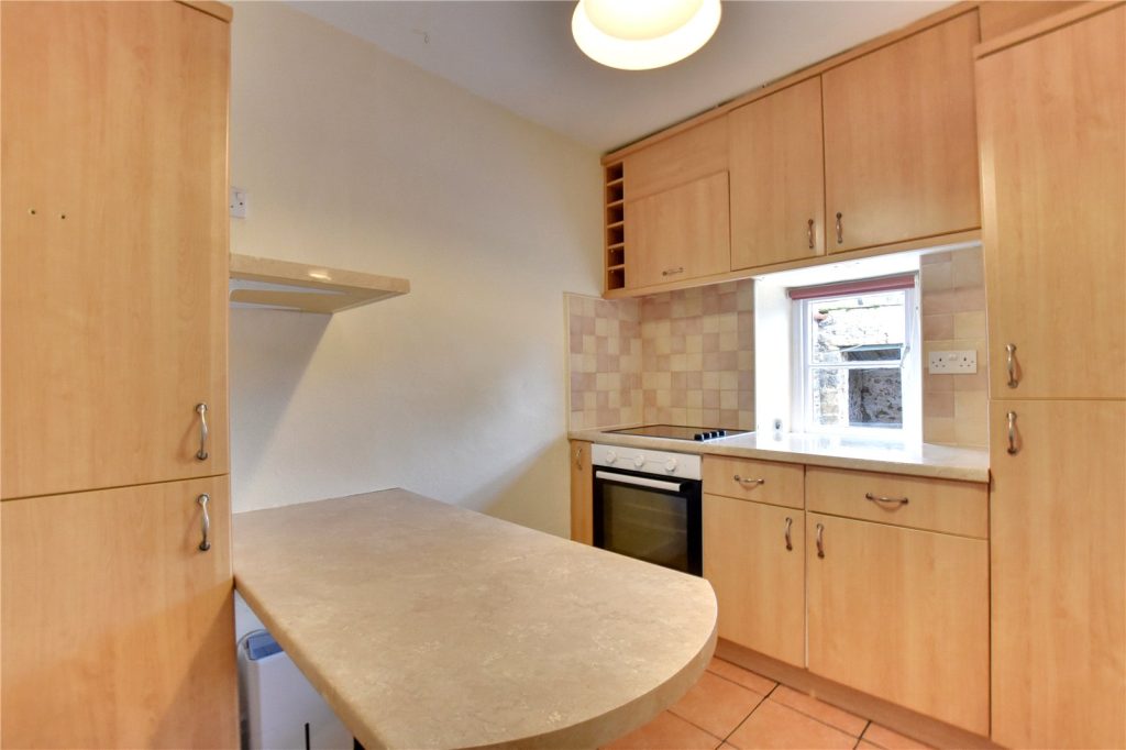 The kitchen is located to the rear and extends over 2 rooms, fitted with a range of base and wall mounted storage units, topped with contrasting worktops which incorporate a stainless steel sink. Integral appliances include an electric four ring hob and an oven, while there is space for freestanding appliances, there is also a breakfast bar for informal dining.