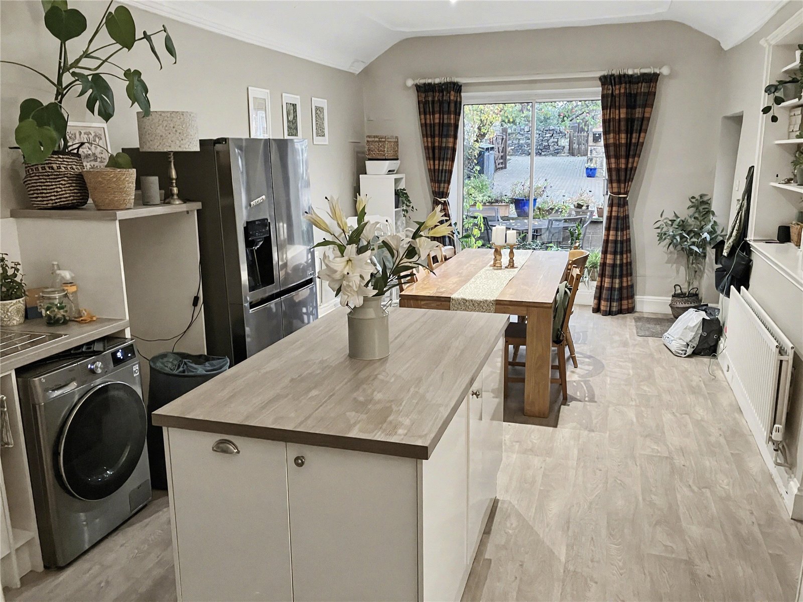 Directly accessed from the kitchen/diner is a rear courtyard with seating as well as access to the snug room, a formal lounge and traditional family bathroom. On the first floor there are three double bedrooms, one of which benefits from built in wardrobes and en-suite.