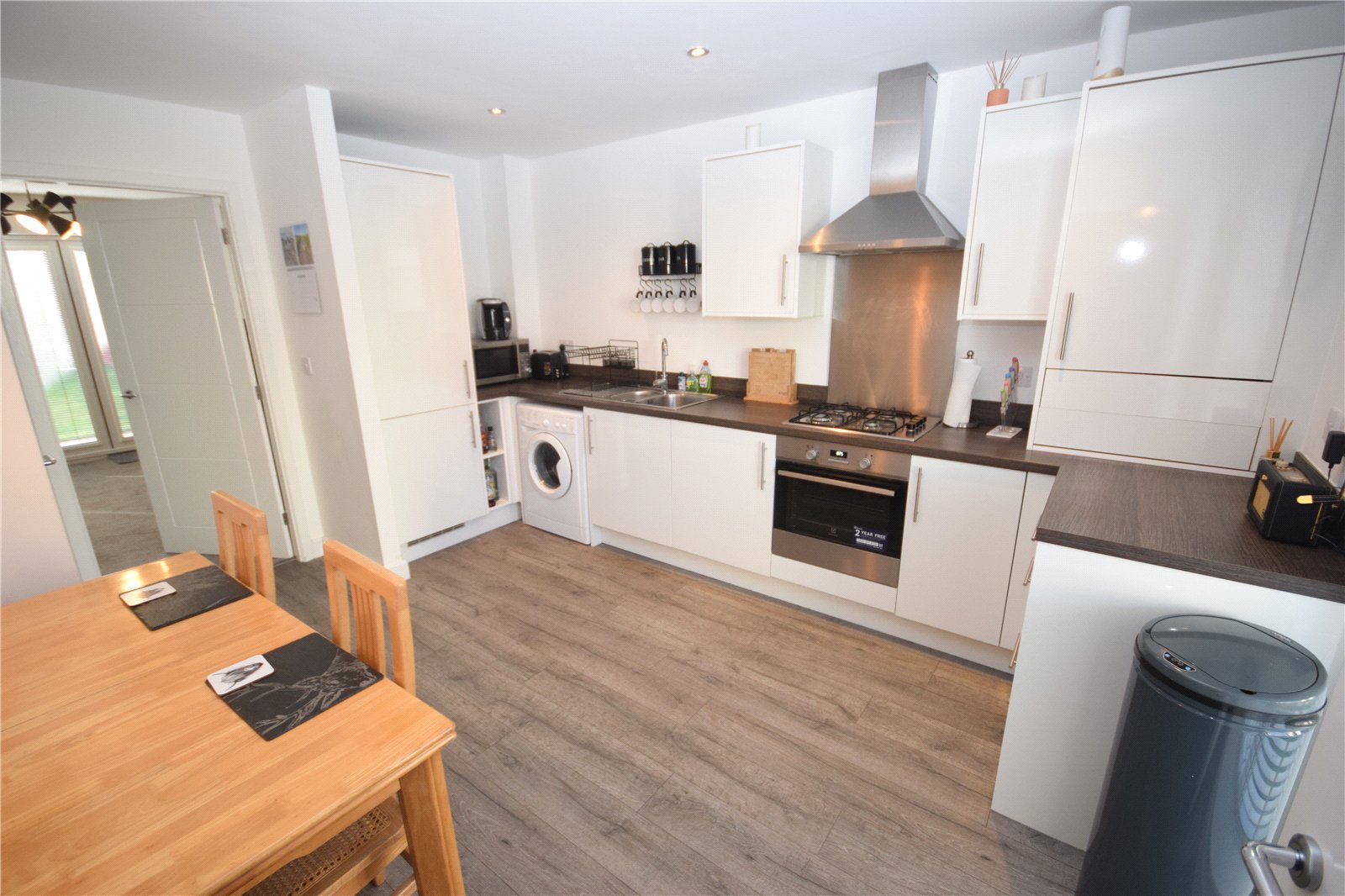 Upon entry there is a small vestibule area. A door to the right then leads into the kitchen. This room benefits from an elongated window allowing light to flood this airy entertaining space. High gloss white upper and floor units house the integrated appliances including fridge/freezer, cooker and 4-ring gas hob burner.