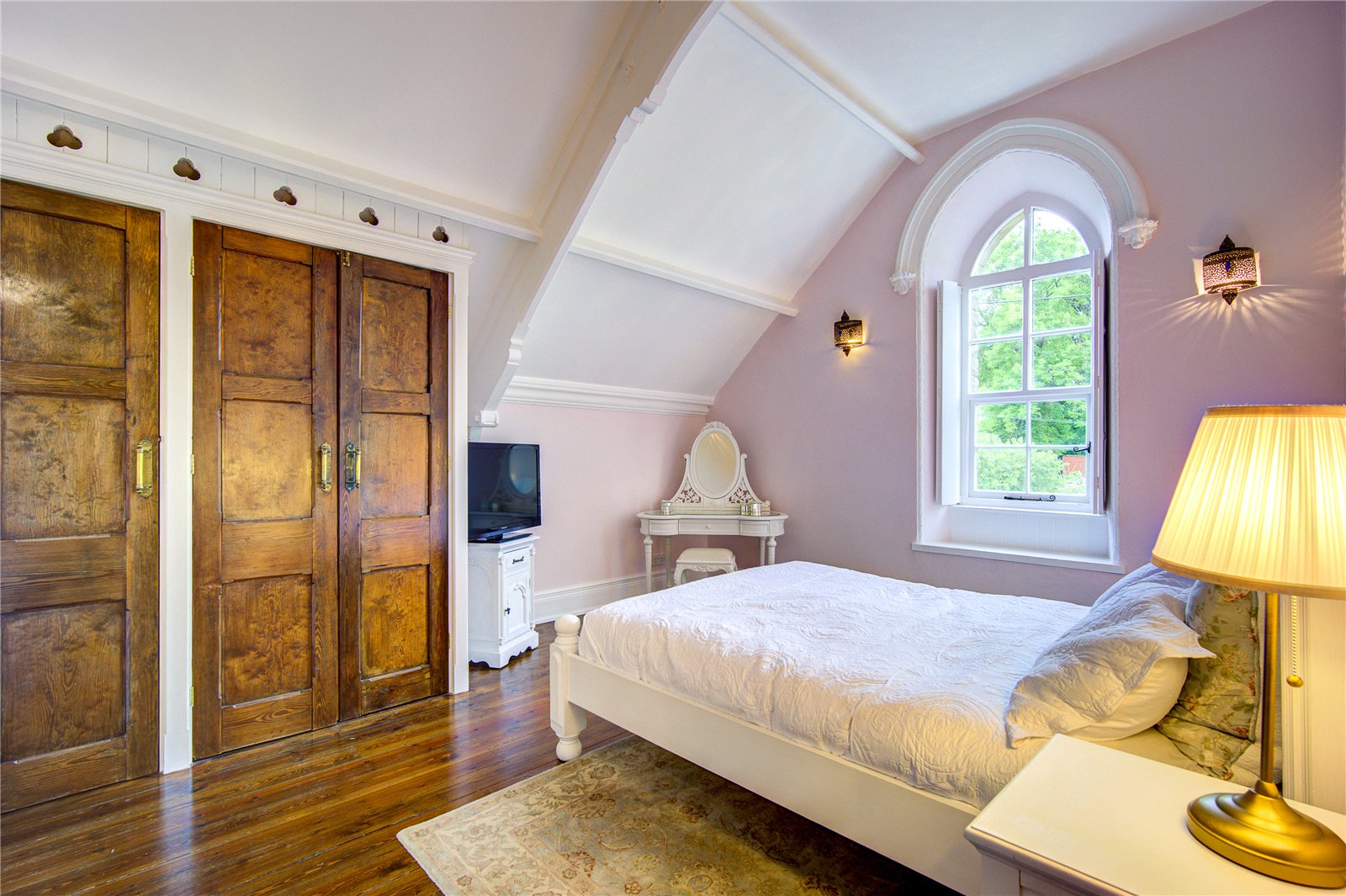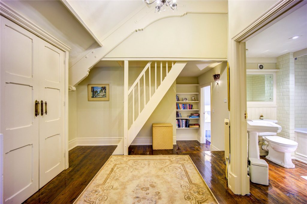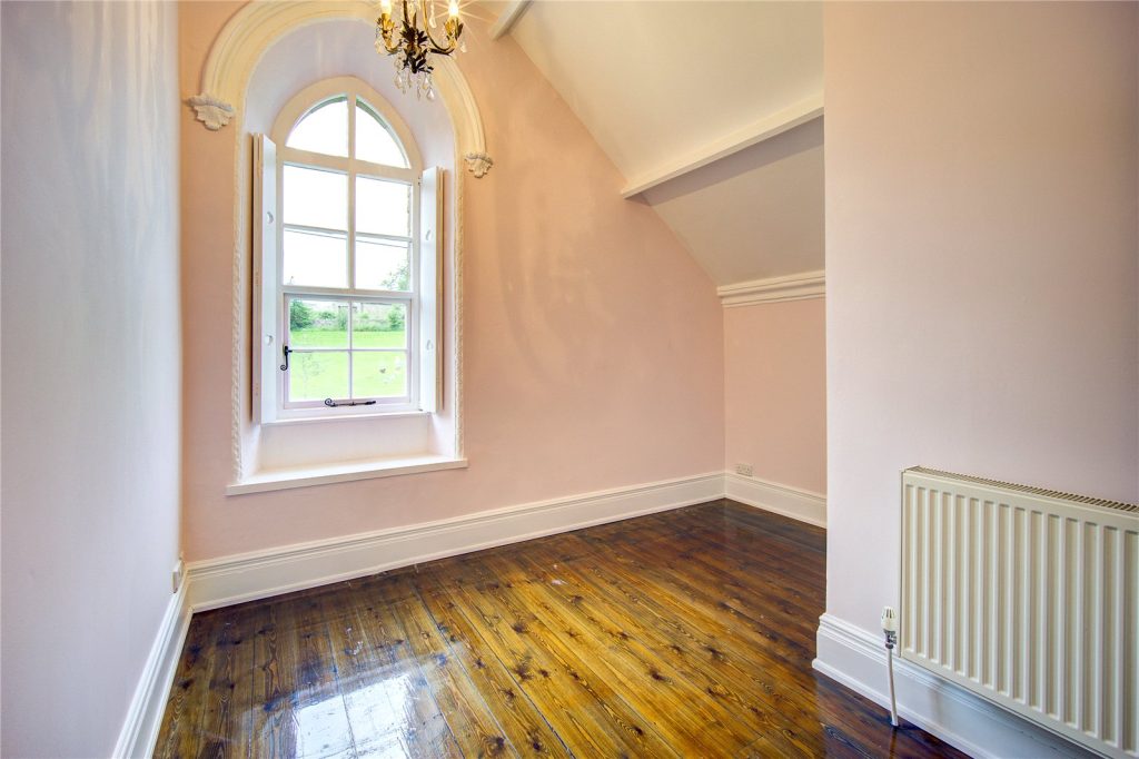 Stairs from the first floor landing rise to the second floor, which leads to the fifth bedroom within the roof space. A well proportioned bedroom featuring a porthole window, enjoying superb views.