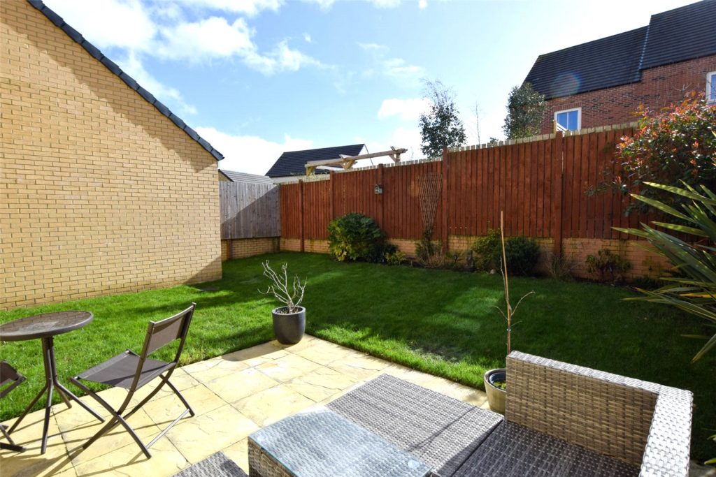 The enclosed rear garden is mainly laid to lawn with planted borders and a pleasant patio area, ideal for outdoor dining and relaxation.