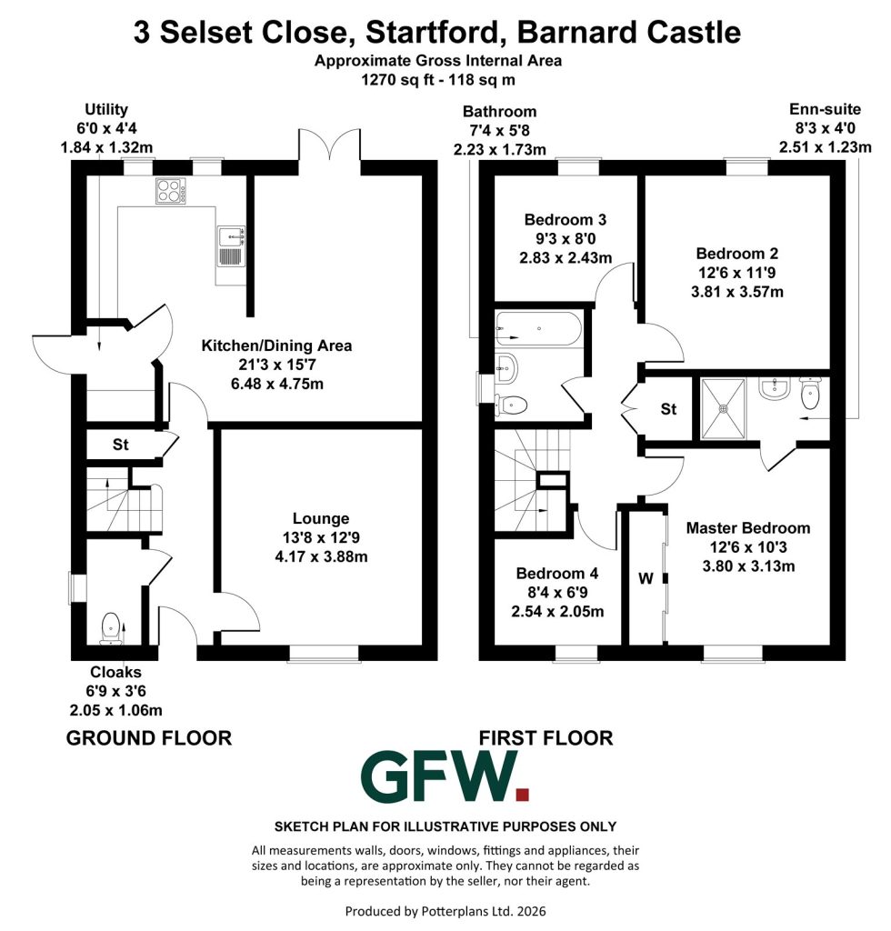The main entrance opens into a generous reception hallway, complete with a ground-floor WC/cloakroom and a useful under-stairs storage cupboard.