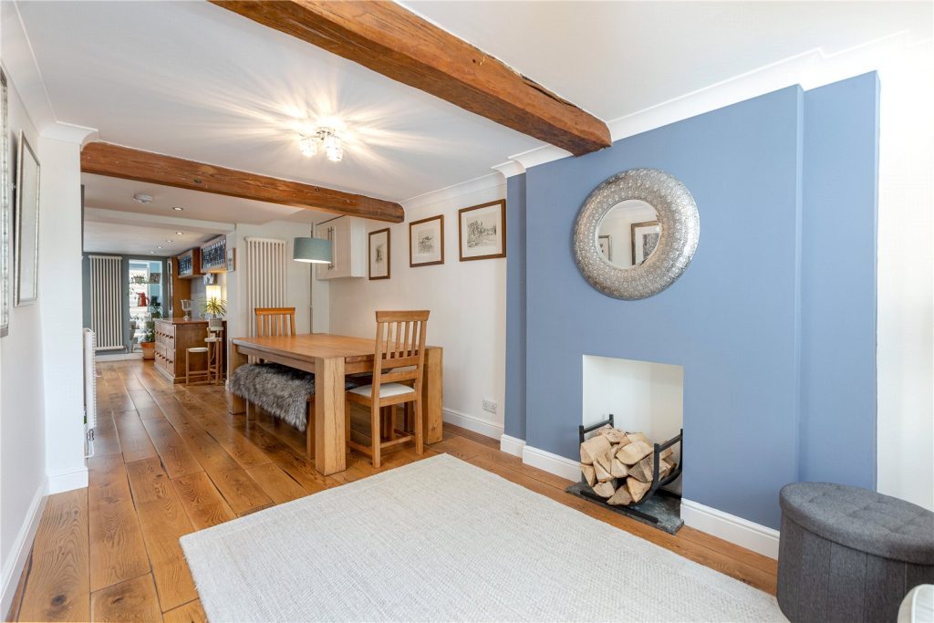 The accommodation is approached via an entrance porch with an oak door. A further door opens into a reception room which has a window to the front and opens out into the dining area. There are exposed beams and engineered Oak flooring. A door to the left leads into the living room which has a window to the front, and a woodburning stove set into the chimney breast.