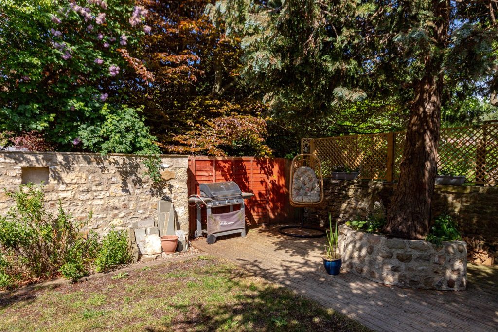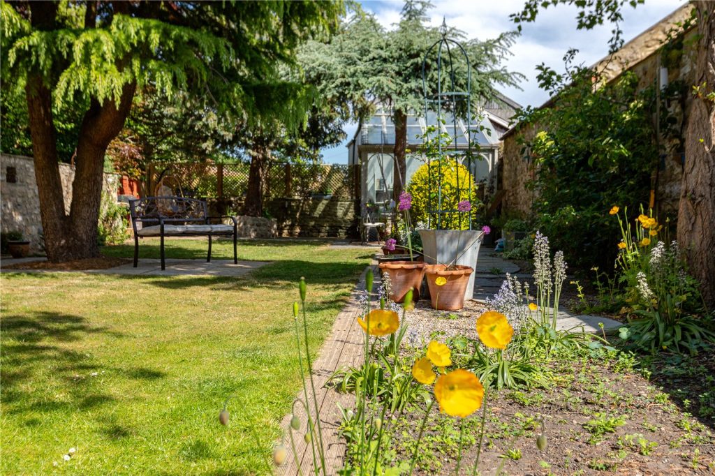 The garden to the rear is bounded by a stone wall. There is a gravelled area which provides off street parking directly to the rear of the house. A flagged pathway leads up through the garden towards the lawned section. There are established trees and planted borders. To the rear boundary of the property is a further flagged and decked patio area and a wooden summer house. The summer house has light and power.
