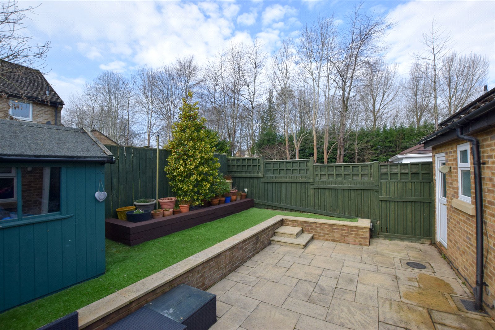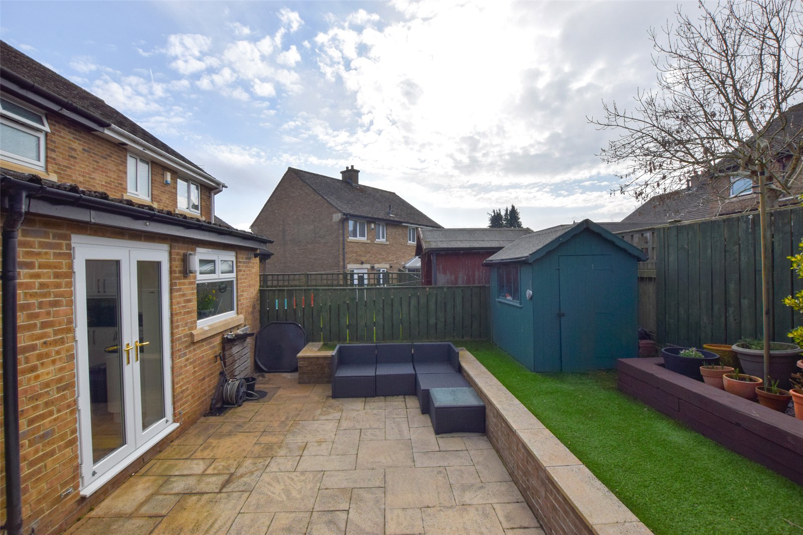 To the front of the property, there is a driveway providing off road parking for numerous vehicles. To the rear, there is a low maintenance, enclosed South facing garden which features a pleasant patio area, and a raised area with artificial lawn and a timber shed.