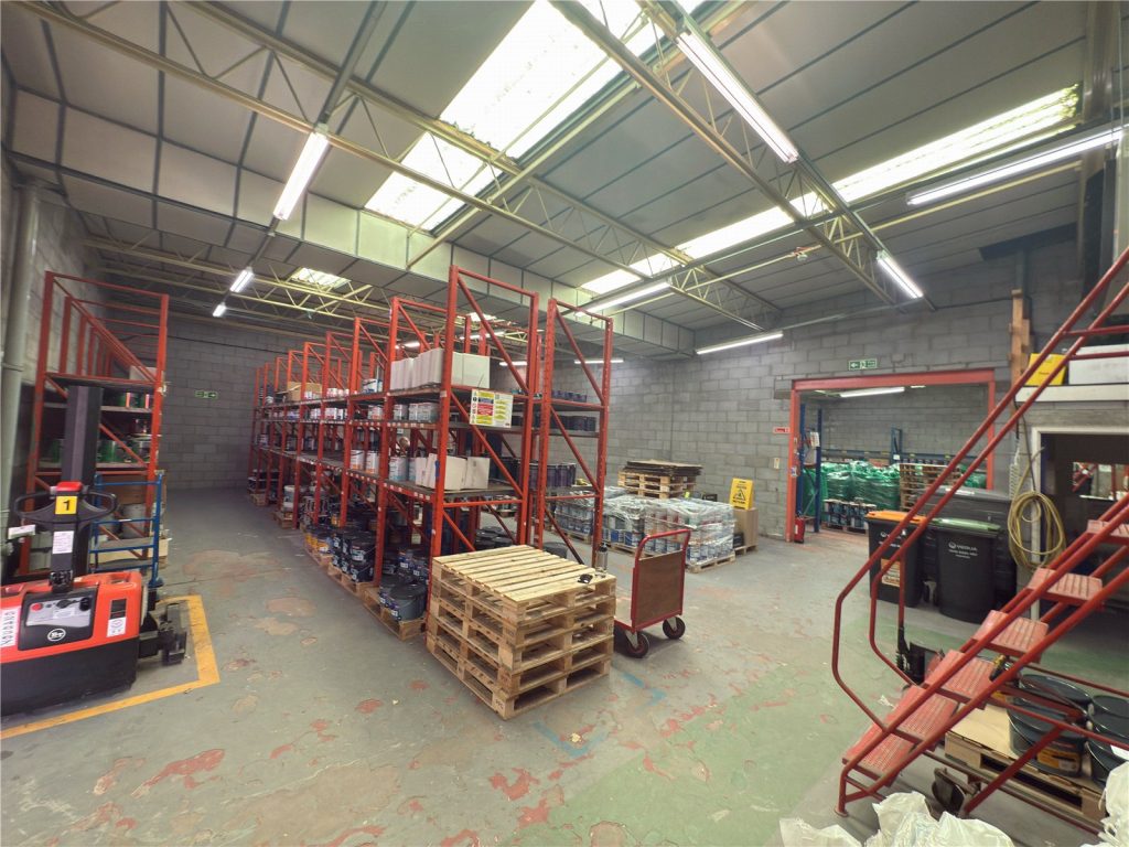 The unit is constructed using steel portal frame, with blockwork and profile sheet cladding to the elevations. The accommodation compromises a large ground floor industrial warehouse, made up of three interconnecting units, a dedicated showroom, office space and staff welfare facilities. The unit benefits from electric roller shutter door access and on-site staff and customer parking.