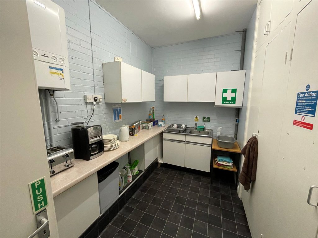 The property comprises an office space with one larger floorplate and several smaller rooms surrounding. It has its own WC’s and Kitchen area.