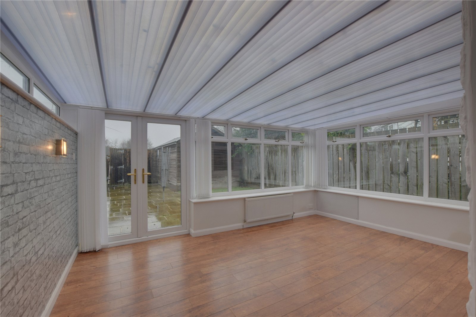 The conservatory follows on from the kitchen and provides a versatile living space with French doors out to the rear courtyard.
