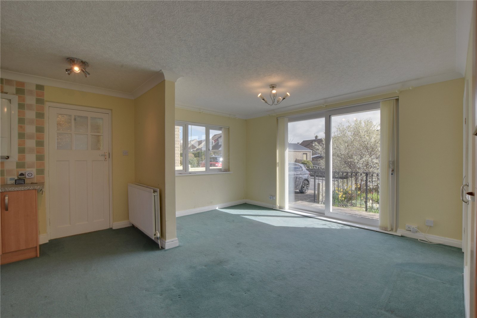 The dining area provides a versatile reception space and benefits from sliding patio doors leading out to the gardens.