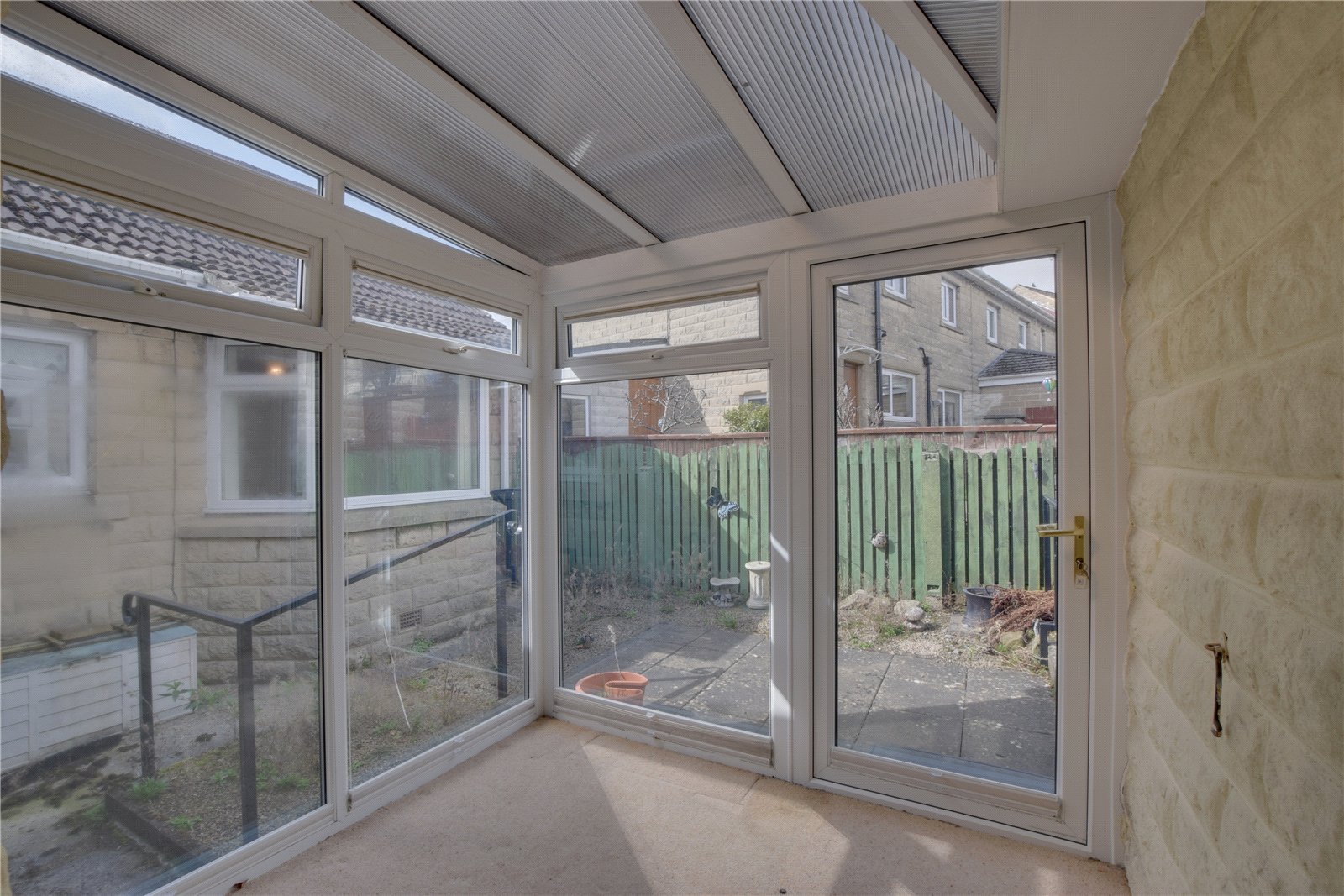 There is a covered walkway to the rear, which provides internal access to the garage, external access to the driveway, and to the enclosed rear courtyard via a small porch.