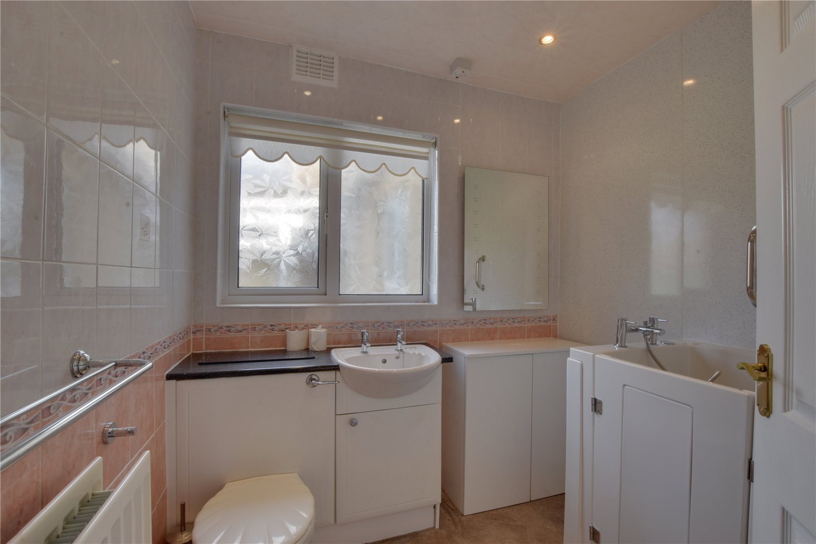 The second bedroom is a further good sized double facing the rear, while the bathroom completes the accommodation and is fitted with a suite comprising a low level WC with a concealed cistern, a wash hand basin set within a vanity unit and a walk-in bath.